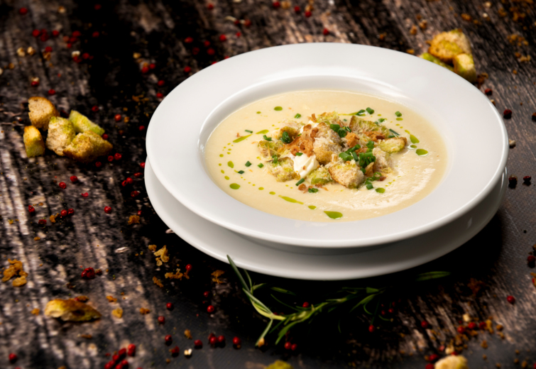 puree maślane / sos serowy z pieprzem zielonym / mieszane sałaty z dressingiem rukolowym