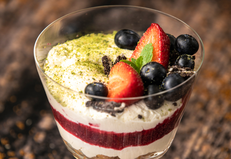frużelina żurawinowa / puder miętowy / kruszonka cynamonowa
